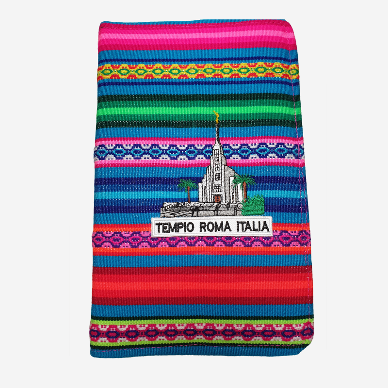 Copertura per proteggere la tripla combinazione delle Scritture, con cerniera su tutti e tre i lati. Questa fodera è in tessuto peruviano multicolore con pelle ricostituita. La sua fodera è rigida e leggermente imbottita.