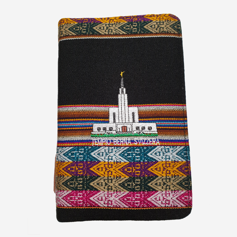 Copertura per proteggere la tripla combinazione delle Scritture, con cerniera su tutti e tre i lati. Questa fodera è in tessuto peruviano multicolore con pelle ricostituita. La sua fodera è rigida e leggermente imbottita.